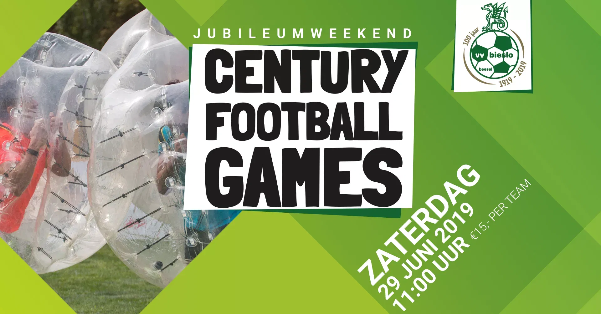 Ter gelegenheid van het 100-jarig jubileum van V.V. Bieslo worden op deze zaterdag overdag de Century Football Games gehouden. Op deze middag zullen de teams onderling strijden om wie het beste is in de tienkamp. Alle spellen hebben een raakvlak met de voetbalsport en bij diverse spellen wordt gebruik gemaakt van attractieve luchtkussens (je hoeft geen voetbalkwaliteiten te hebben!). Iedereen vanaf de middelbare school kan deelnemen, ook als de voetbalcapaciteiten wat beperkter zijn. De bedoeling is om er gezamenlijk een sportieve en leuke dag van te maken!