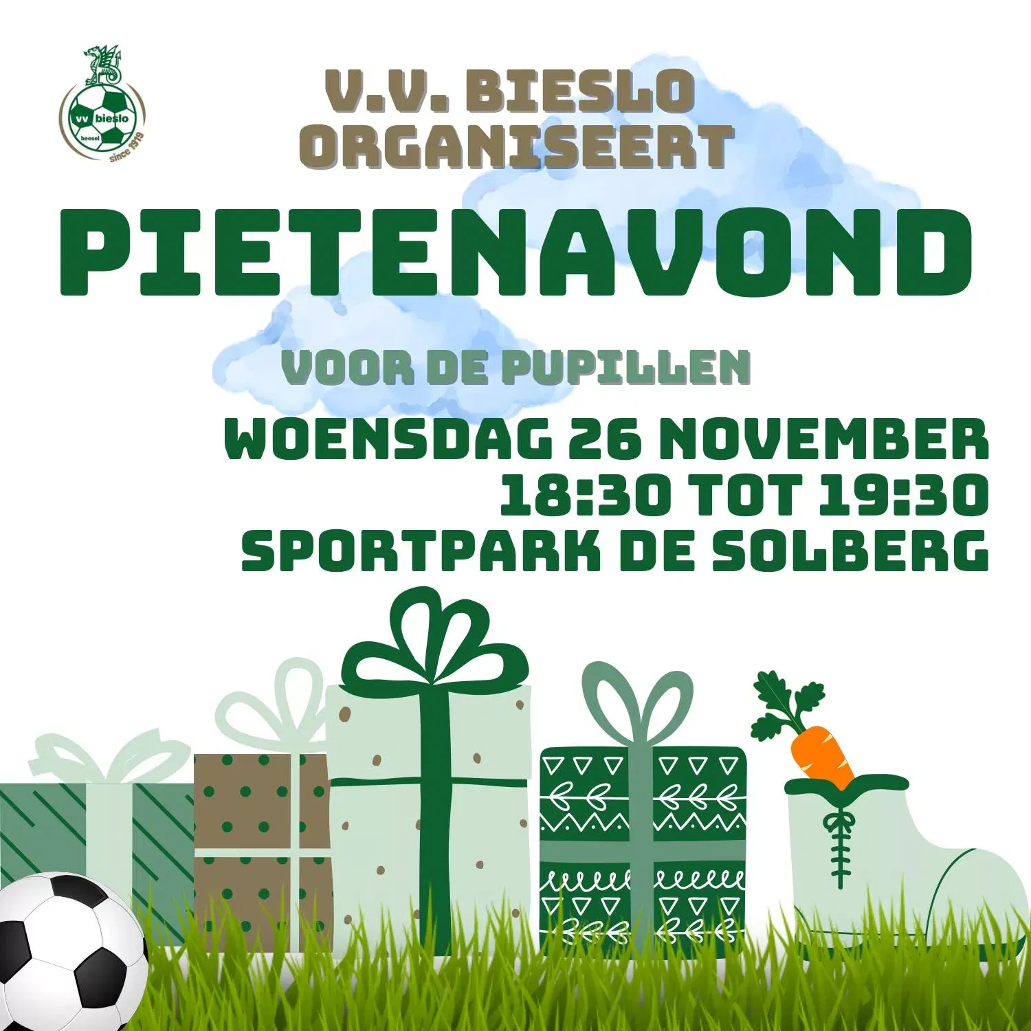 Woensdag 26 november bezoeken twee pieten de trainingen van de pupillen!