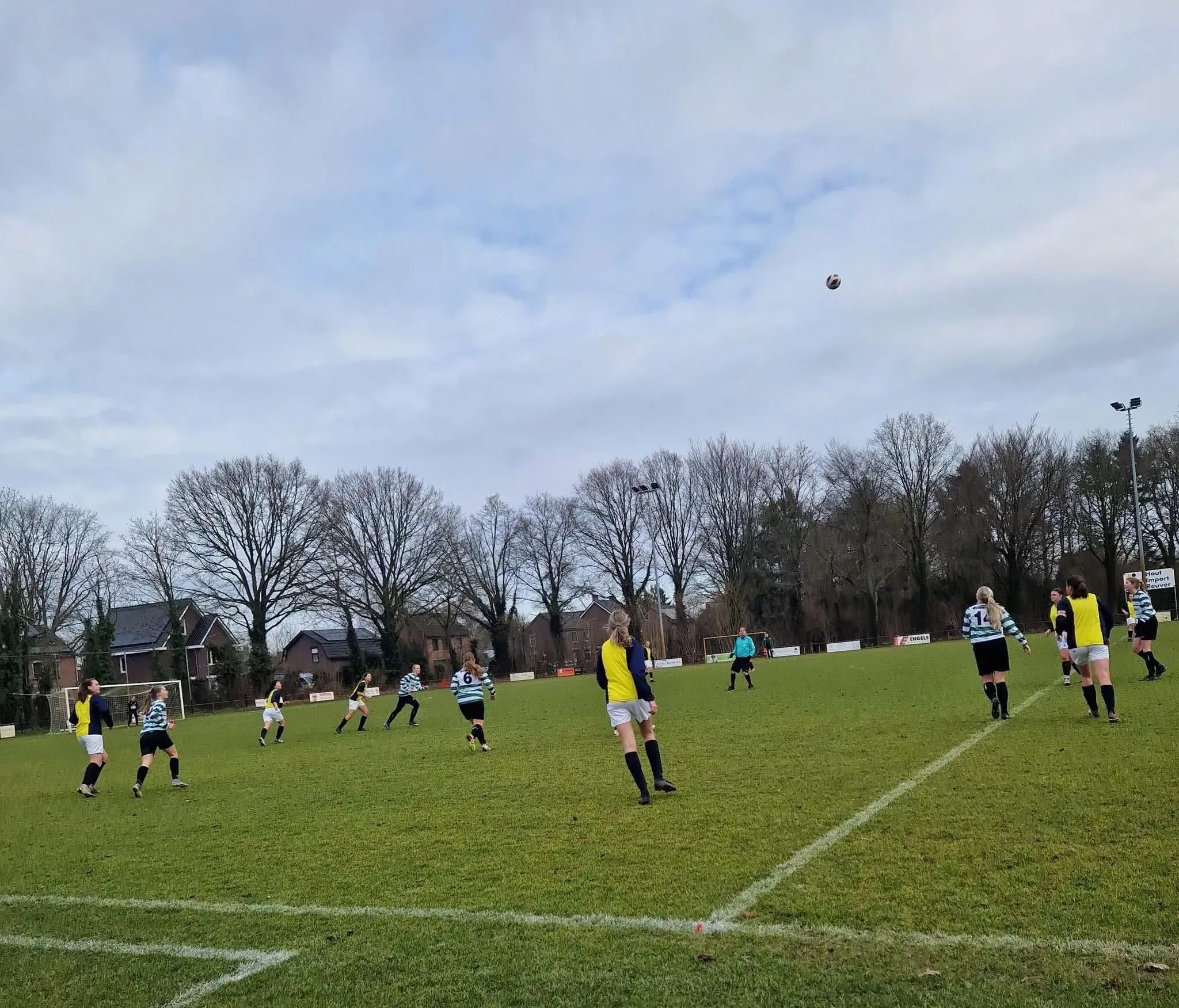 Ondertussen maakten we ons op voor een nieuwe competitiewedstrijd tegen ST Eindse Boys/Merefeldia Vr1. Deze ploeg staat momenteel vierde op de ranglijst, dus we wisten dat we flink aan de bak moesten. Tijdens de warming-up zat het eigenlijk allemaal wel goed, waardoor we met vertrouwen aan de aftrap verschenen op veld 2. Het eerste kwartier hadden we alles redelijk op orde, maar daarna ging ons spel al snel bergafwaarts. Op een of andere manier werden de combinaties niet gevonden en oogde het allemaal wat laks. ST Eindse Boys was met een bal op de paal zelfs het dichtst bij de openingstreffer. We creëerden zelf ook wel wat aanvallen, maar onze bezetting in de zestien was te beperkt om echt het verschil te maken. Uiteindelijk was het de tegenstander die dan ook de 0-1 op het scorebord zette. Een flinke domper, maar hopelijk wel de wake-up call die we nodig hadden. Gelukkig lukte het ons nog vóór rust om de gelijkmaker te scoren. Mila zorgde voor een goede bal op Lucie, die voor ons het net wist te vinden. Met een 1-1 gingen we de rust in en bespraken we hoe het in de tweede helft beter moest.