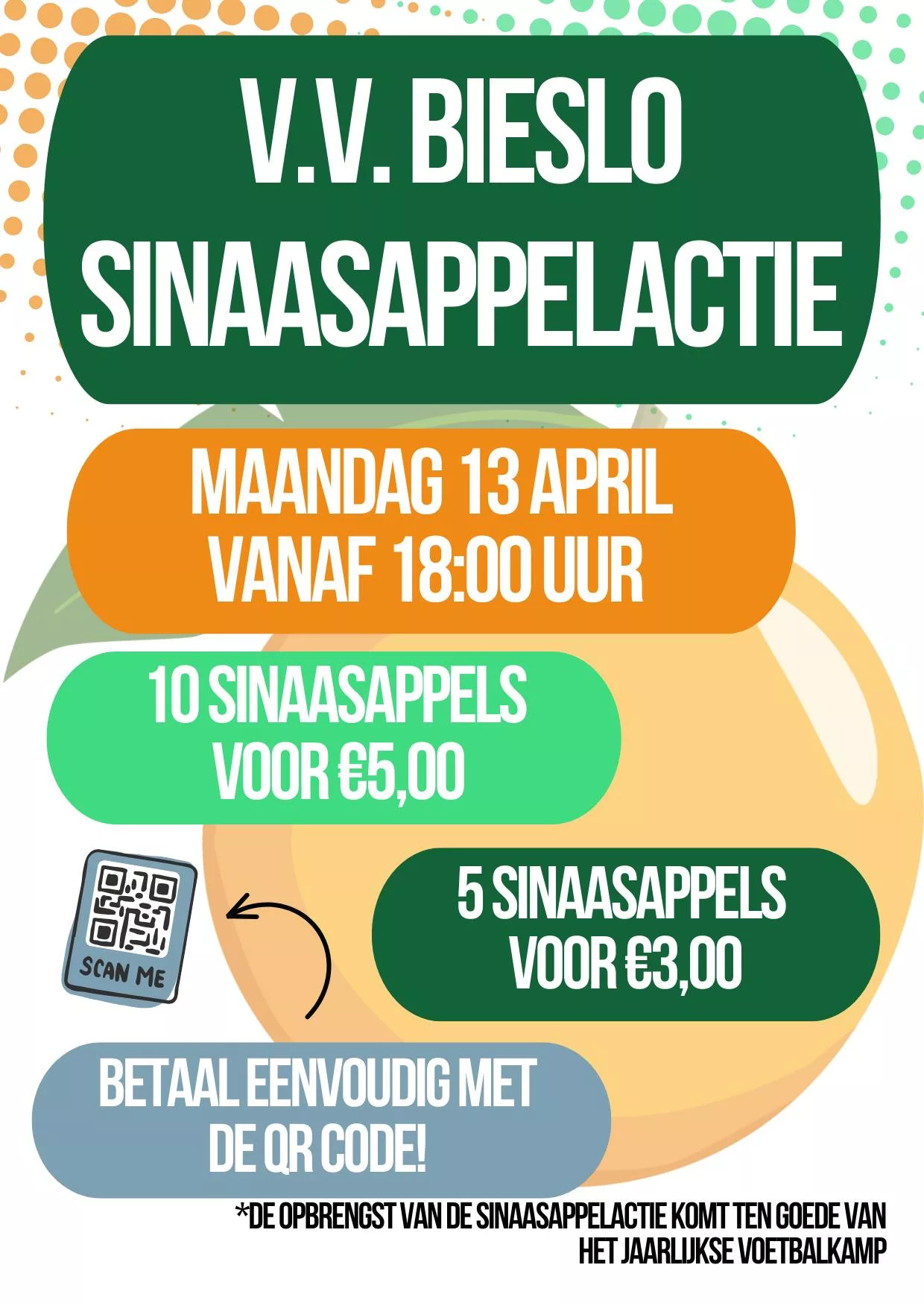 Maandag 13 april vanaf 18:00 uur komen de jeugdspelers en jeugdspeelsters weer langs voor de jaarlijkse sinaasappelactie!